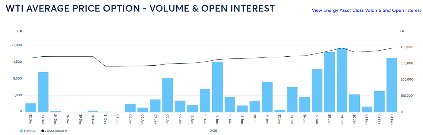 One of the traders in our Discord was discussing exotic options in commodities markets. The topic of APOs or “average price options” came up because of this tweet: