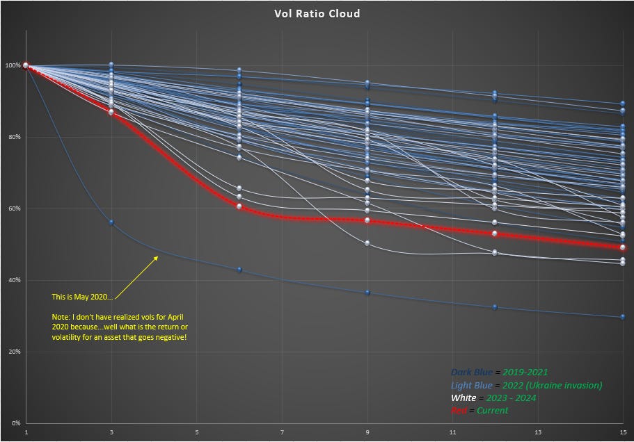 We can observe this directly by looking at each of those years’ M12/M2 realized vol ratio.