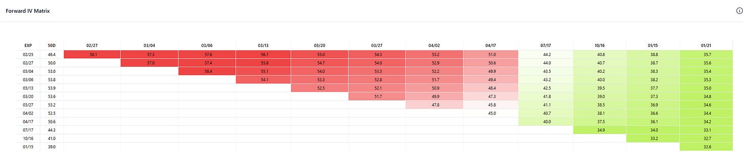 Implied vols until late March are ~53%.