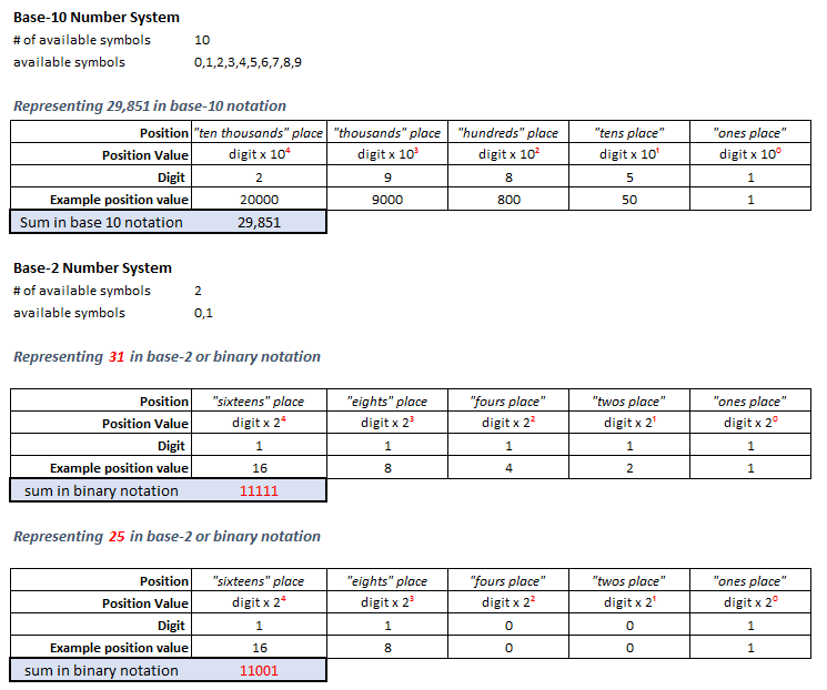 In binary: there’s a one’s place, twos place, fours place, eights place…