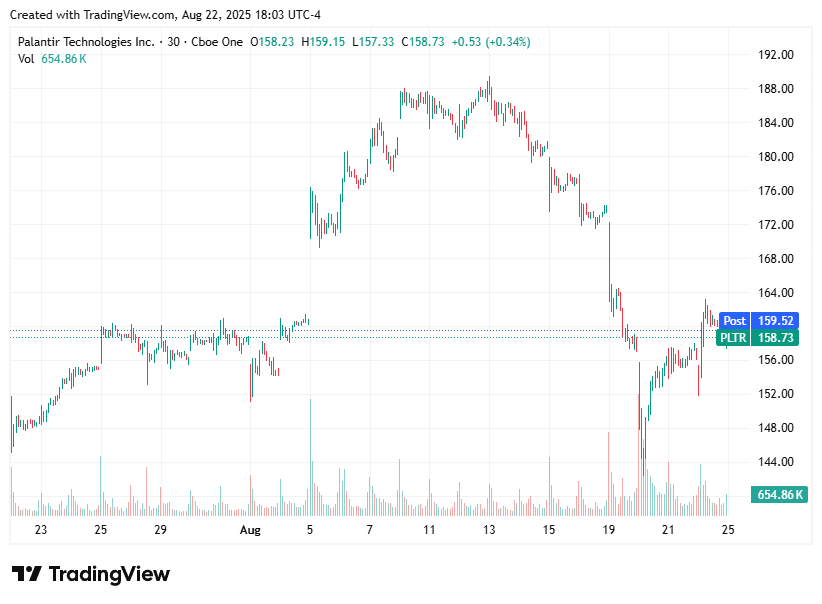 Give Palantir the same $100 billion valuation that Databricks just earned. Where does that put the stock? $40. The exact same math we saw when comparing Palantir to OpenAI.