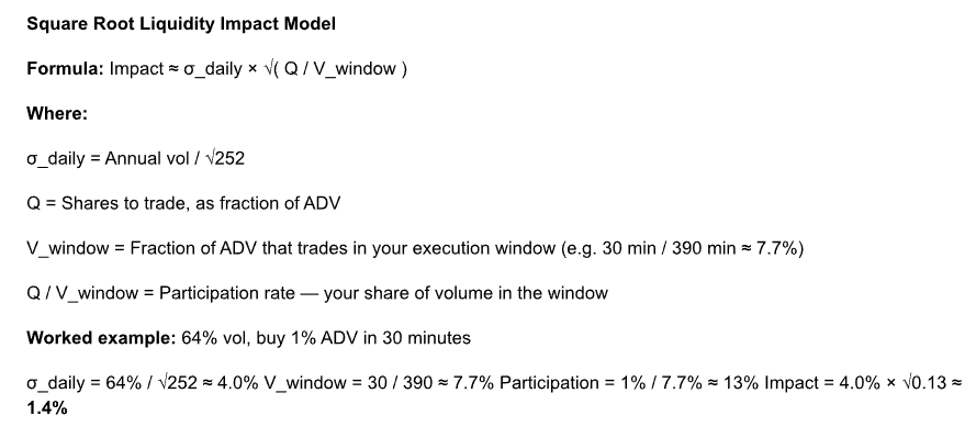 🧩Random fun bit…the square root law happens to do a fantastic job of handling “slippage” in the game I’m designing. Players will exactly what it’s like to get edge on a trade (or get hosed by negative edge!)