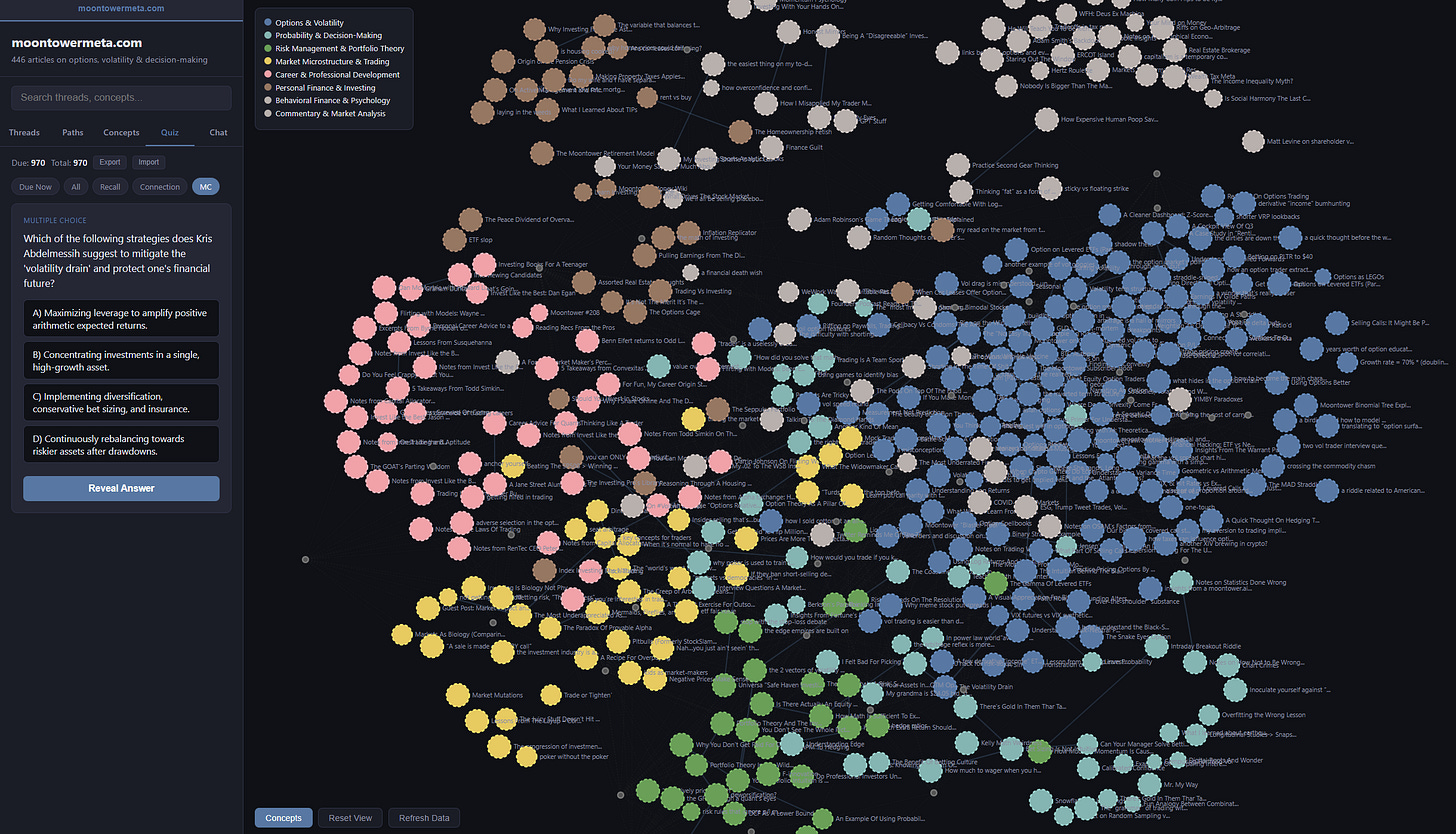 A long-time reader, Akhilesh, sent me a mind map of my website he vibe-coded. You can refresh it to keep it up-to-date, generate learning paths, chat with it, and even have it quiz you.