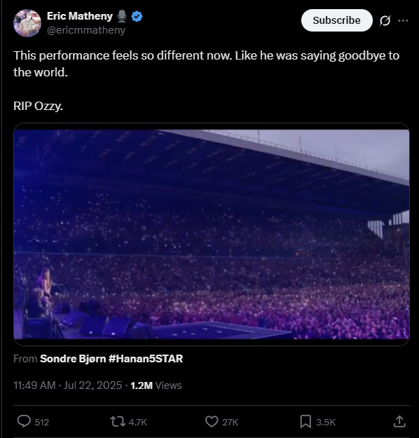 He went out like a legend — just 2 weeks after his final concert, the “Back to the Beginning” show at Villa Park in Birmingham. He shared the stage with the pantheon of rock stars who rallied not only to pay tribute but raise what would be a benefit concert record, $190mm, for hospitals and Parkinson’s research — the disease he has been battling for years.