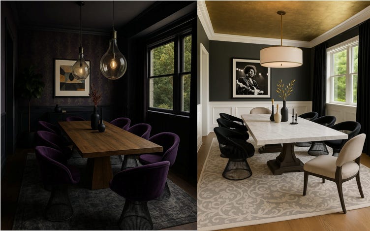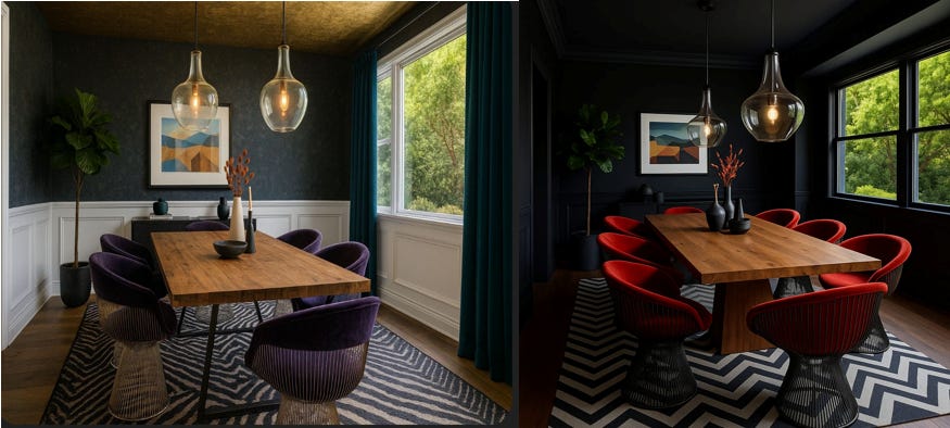 She prompted it with several different looks organized around the chairs we like. It did a good job helping us visualize even of the room isn’t perfectly reproduced.
